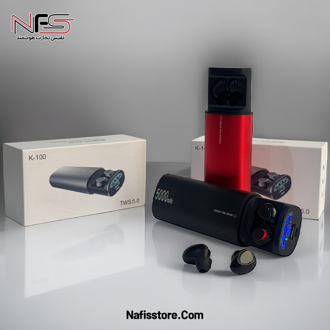 فروشگاه نفیس تجارت هوشمند، با افتخار، پاوربانک هندزفری بلوتوثی TWS K-100 را به صورت عمده عرضه مینماید. این محصول با طراحی نوین و کارایی بینظیر، ترکیبی از پاوربانک و هندزفری بلوتوثی را در اختیار شما قرار میدهد.